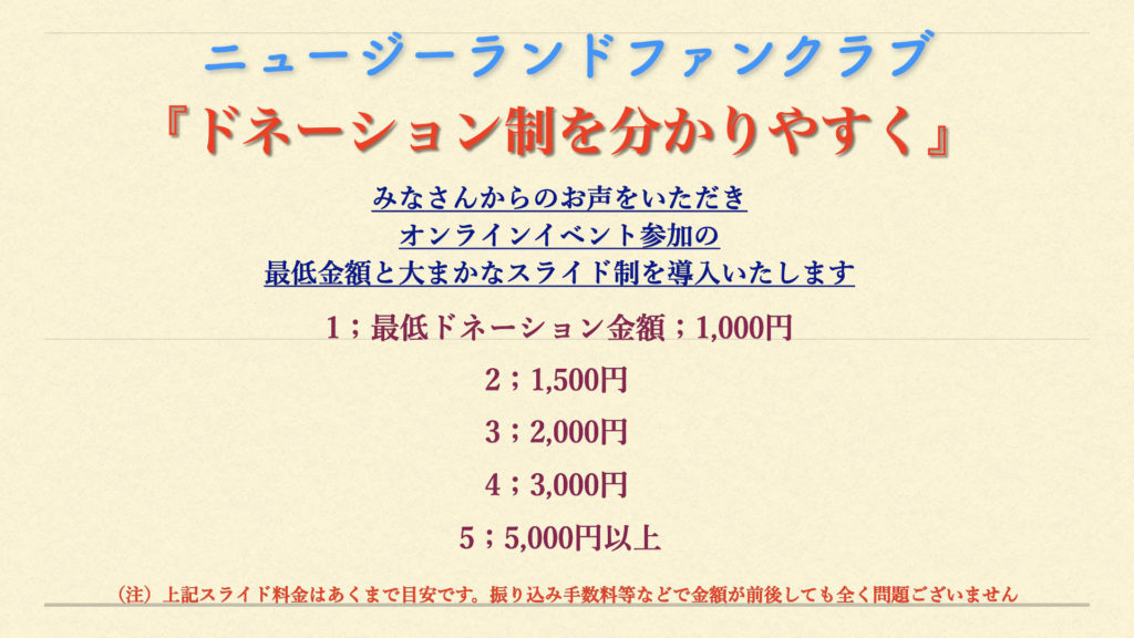 いつもご好評いただいております、ニュージーランドファンクラブのドネーション制オンラインイベント。